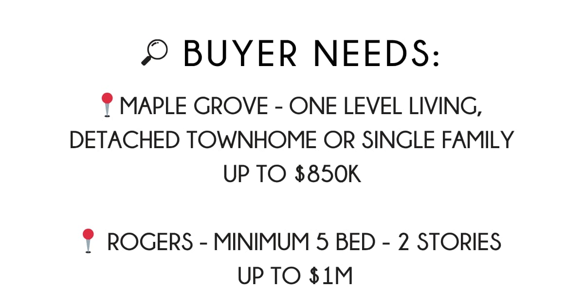If you know of a home that fits our buyers' needs- or if you're looking for a home like one of our current listings- let’s chat! We’d love to help make the right connections.